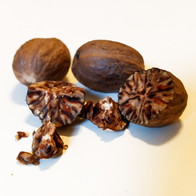 1) Bash the nutmeg with a rolling pin to break it into rough crumbs. Half of the nutmeg should be enough. Stud the clementines with the whole cloves and arrange the spices together in a heavy roasting dish. Well-loved-but-impossible-to-get-sparkling-again dishes work perfectly! Pour over 300ml of cranberry juice. This ensures the dry spices will not burn and collects any tasty spice oils and clementine juices that come out during the roast.