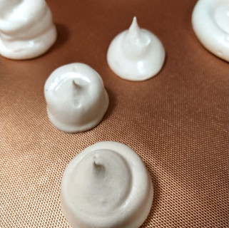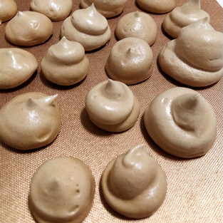 The easy rule to remember here is to use equal quantities of egg white and sugar. You can very easily make these meringues with just equal quantities of egg white and brown sugar, but I added icing sugar to mine to provide some extra structure since I wasn't really sure what I wanted to do with it until it was in the piping bag.