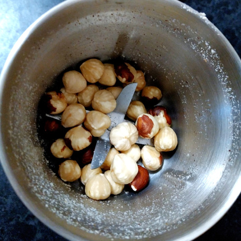 If you do not want to grind your own hazelnuts, purchase 200g of pre-ground hazelnuts and skip ahead to step 3.