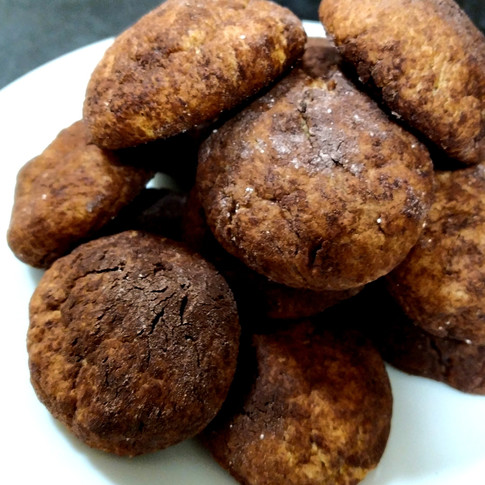 6) Repeat the process and arrange the balls on a baking sheet/ greaseproof paper. Allow some room between them so that they can expand slightly and cook evenly. Bake for between 15-20 minutes. They will have expanded slightly and some may crack like amoretti biscuits. They will be soft to the touch with a dry surface, but they will firm up when cool.