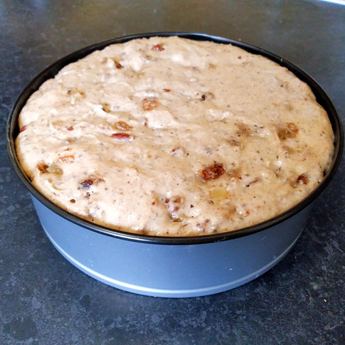 Lightly oil the edges of the springform tin and arrange the dough in it. Cover the dough and leave it to rise somewhere warm for 2-3 hours or until it has doubled in size.